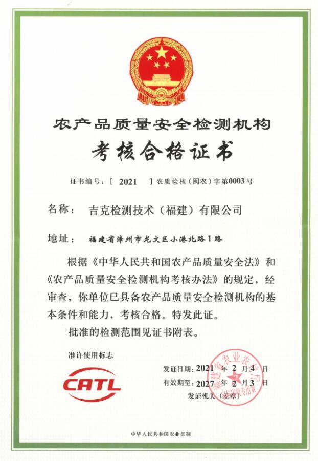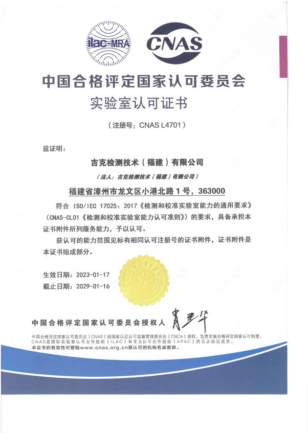 吉克檢測技術(shù)(福建)有限公司,位于福建省漳州市龍文區(qū)小港北路1號,于2019年8月注冊成立,是一家獨(dú)立的第三方檢測公司。公司已經(jīng)通過檢驗檢測機(jī)構(gòu)計量認(rèn)證(CMA)、農(nóng)產(chǎn)品質(zhì)量安全檢測機(jī)構(gòu)資質(zhì)認(rèn)證(CATL),獲得中國合格評定國家認(rèn)可委員會(CNAS)認(rèn)可。公司本著“嚴(yán)謹(jǐn)、規(guī)范、高效、協(xié)作”的原則和對客戶及社會高度負(fù)責(zé)的精神,充分利用本公司優(yōu)質(zhì)的檢測環(huán)境、先進(jìn)的檢測設(shè)備和專業(yè)的技術(shù)人員,第一時間為客戶提供科學(xué)、公正、準(zhǔn)確的檢驗檢測報告。 公司實驗室面積1100多平方米,儀器設(shè)備兩百多臺(套),固定資產(chǎn)一千多萬元,在職員工31人,技術(shù)人員中的中高級職稱及同等能力人數(shù)占60%以上。我們的服...